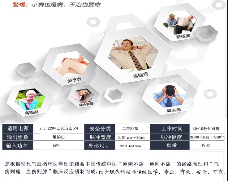 中頻經(jīng)絡(luò)通治療儀適應(yīng)范圍:頸椎病、肩周炎、落枕、腰椎間盤突出癥、軟組織挫傷的輔助治療等。